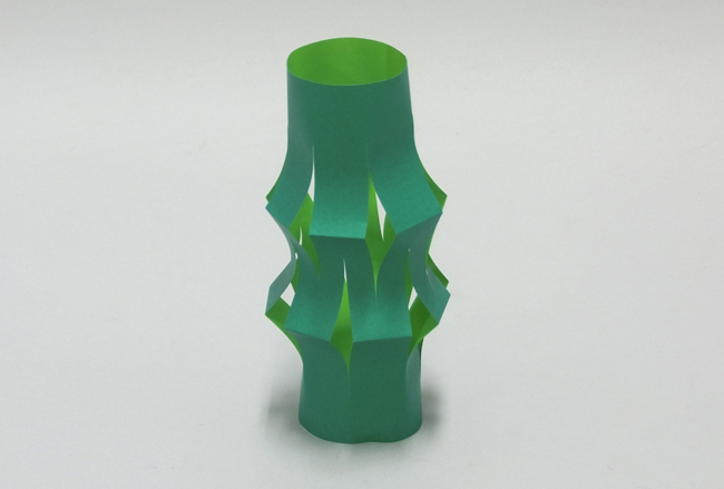 ※②のとき、斜めに切り込みを入れると作品の印象が変わります。