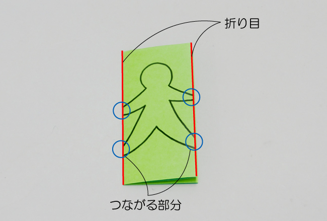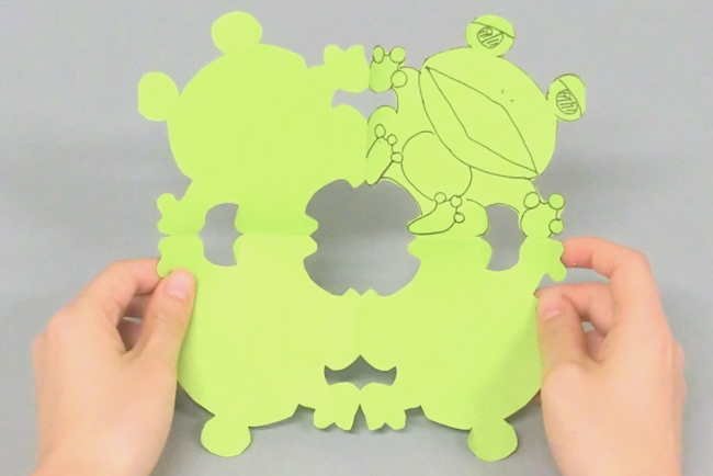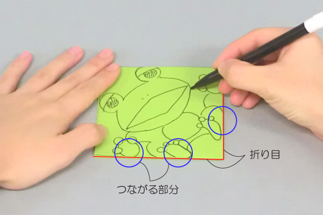 ③つながる部分が折り目にかかるようにして、自由に形を描きます。