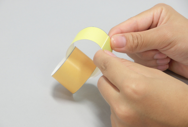 ⑤色がみを丸め、両端をのりで貼り合わせます。