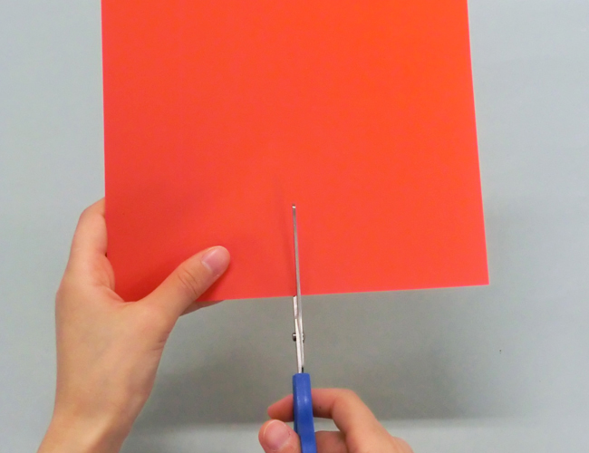 ①色がみをタテ半分に切ります。