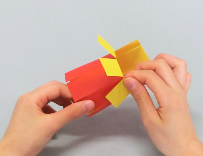⑥切り込みを入れた部分を1つずつ折って立てていきます。