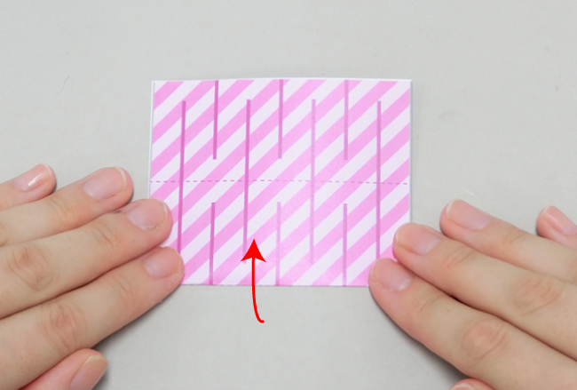②点線にそって半分に折ります。