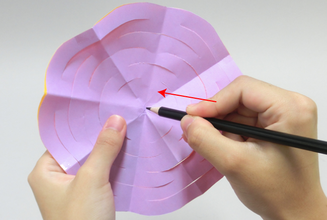 ⑥上下から交互に切り込みを入れます。この時、端に合わせて曲線を、描くように切るときれいに見えます。