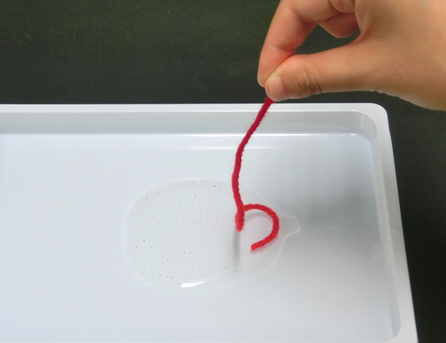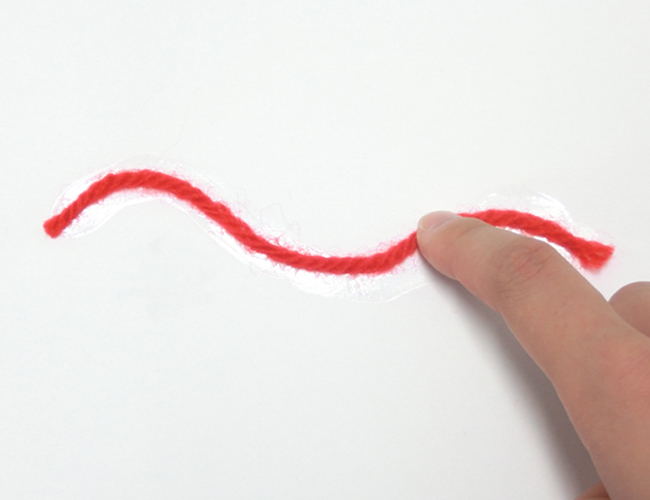 ②毛糸を垂らし、のりづけをします。