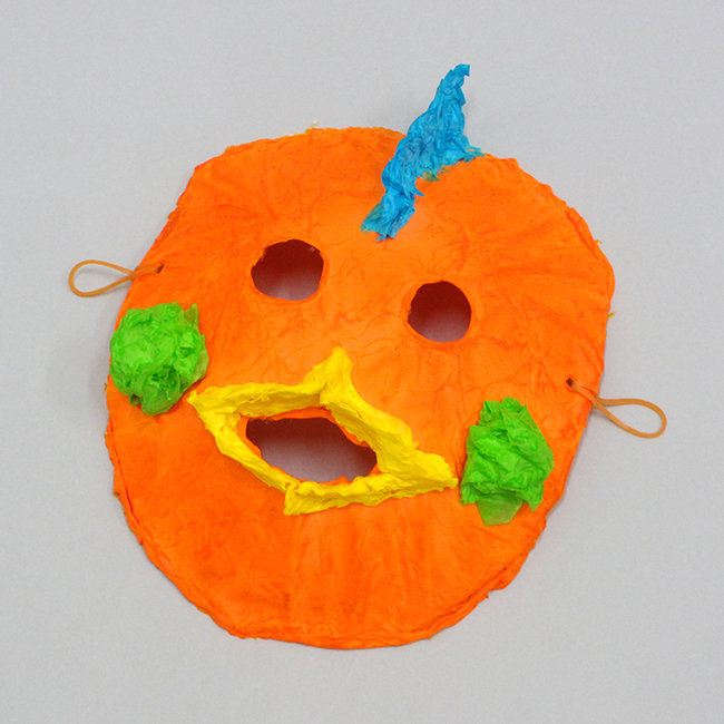 おはながみがはがれたり、パーツがとれた場合はお面芯から外した後に、洗濯のりで接着しなおしましょう。