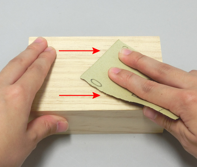 紙やすり(サンドペーパー)を使って木の表面を研磨し、なめらかにしましょう。