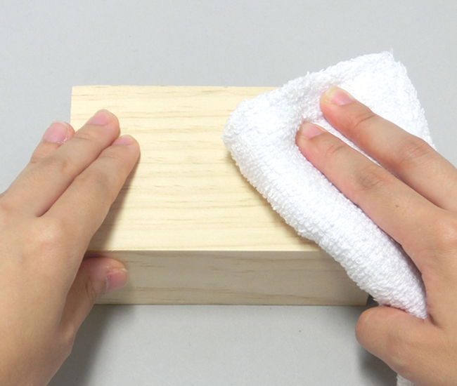磨き終わったら、乾いた布で木くずをふき取ります。