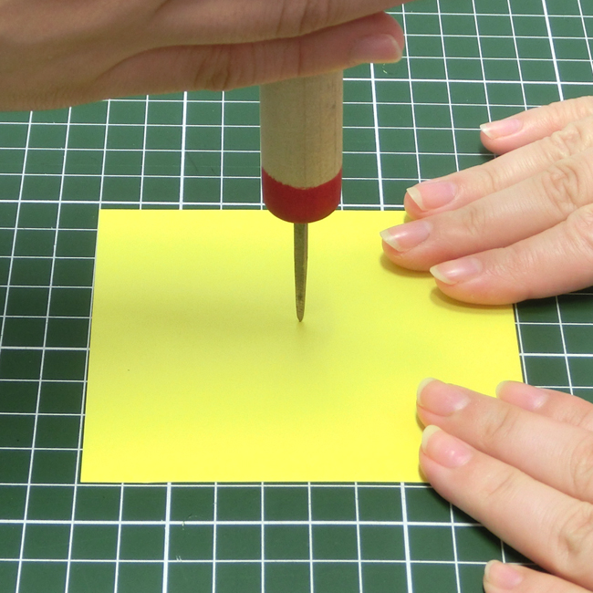※穴をあける位置が穴あけパンチの届かないところにあるときは「画びょうと鉛筆」や「きり」を使って穴をあけましょう。