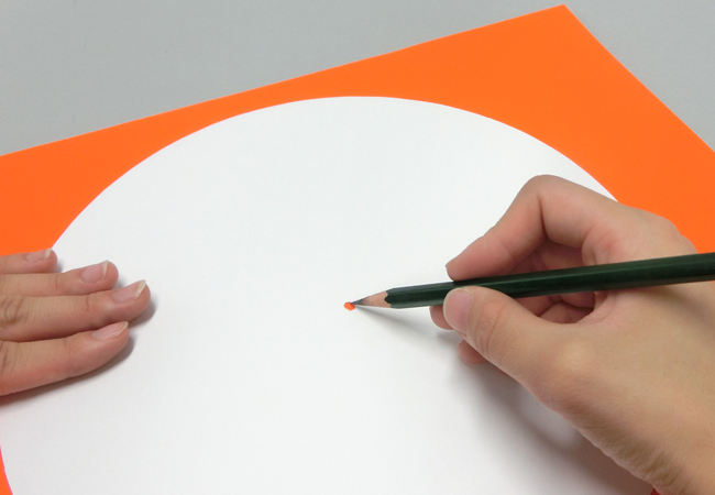 ②丸土台をつける位置を決め、カラーフォーメーションの上に丸土台を置き、穴をあける位置に印をつけます。