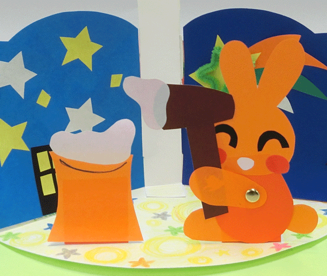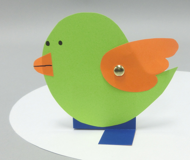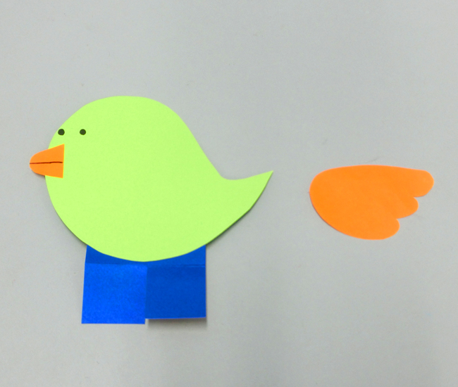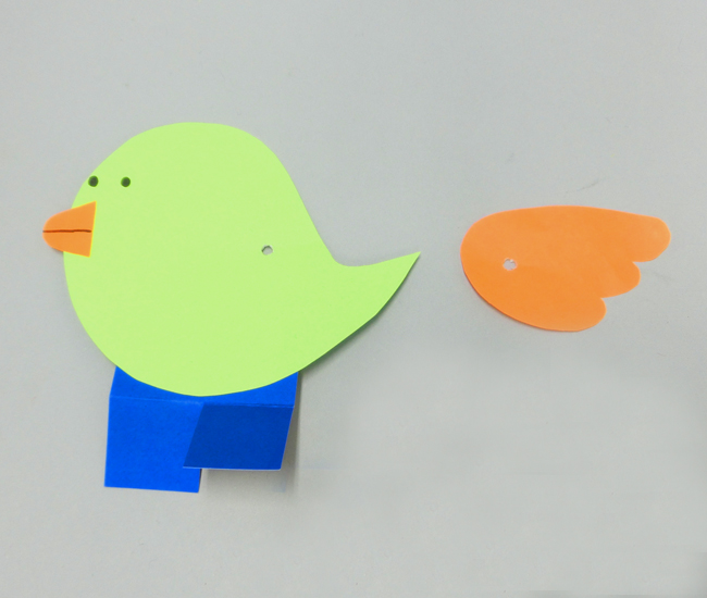 ①飾りをつくります。本体と動かしたいパーツは別につくります。※本体の穴をあける部分は、余ったカラーフォーメーションか画用紙を使用しましょう。