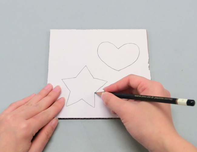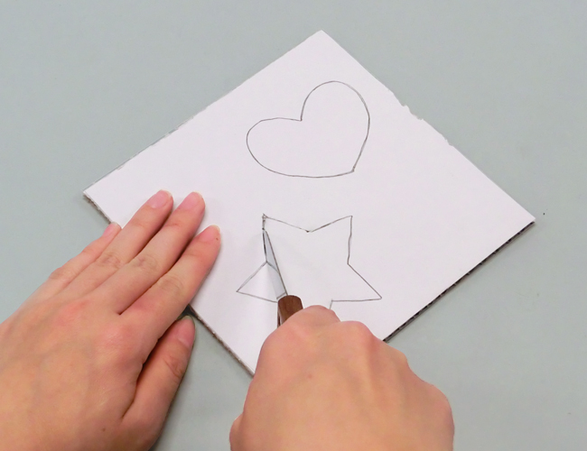 ダンボールをはがして作品にでこぼこの面を加えることができます。