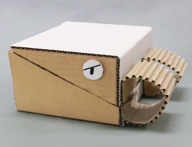 片面ダンボールは曲げやすいため、動かす仕組みに適しています。
