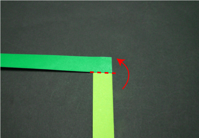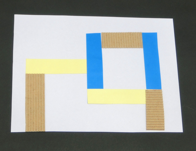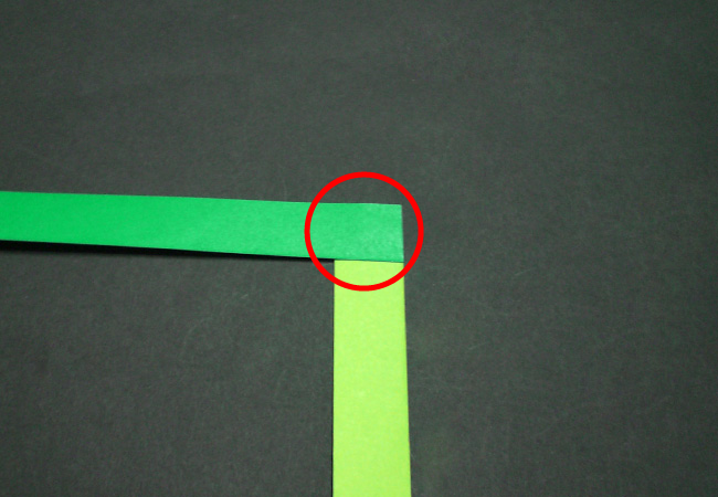 ②2枚の端をL字型に重ね、のりで貼ります。