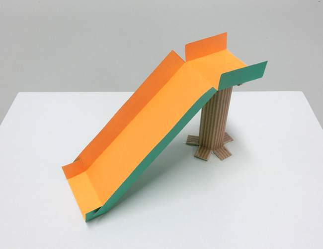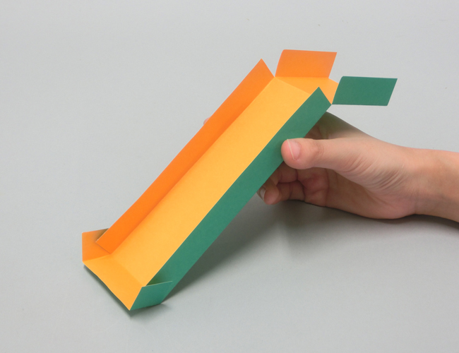 ④折り目にそって、すべり台の形をつくります。