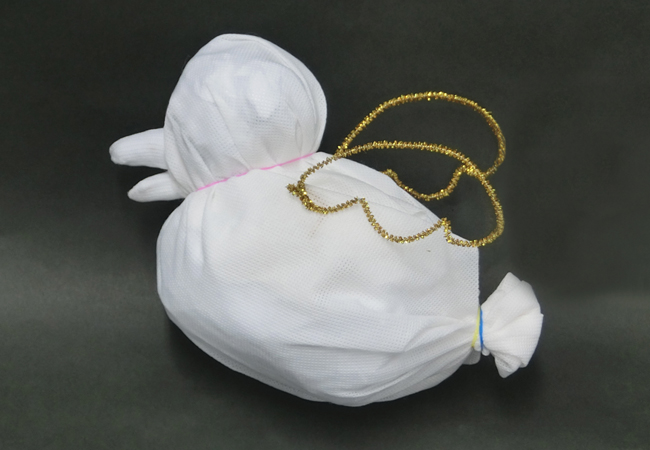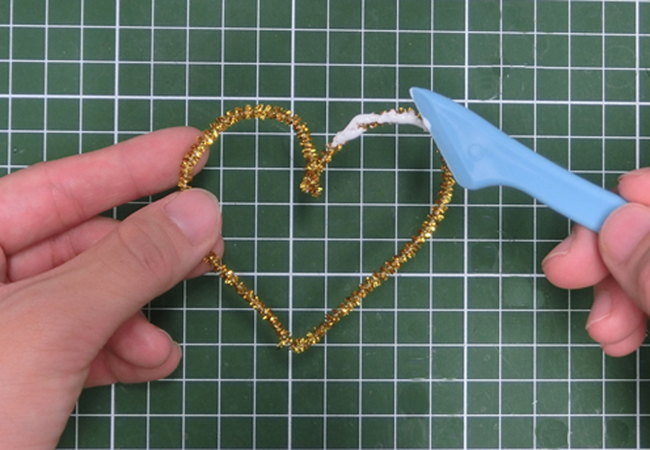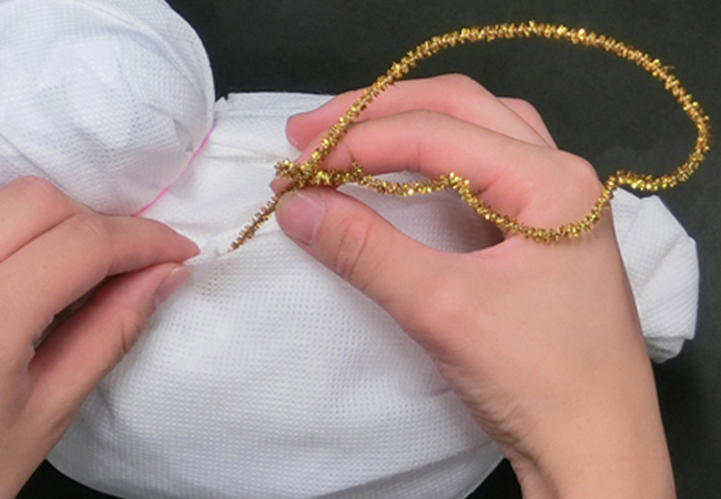 モールを使って飾りをつくるときには、モールの端でけがをしないように注意しましょう。