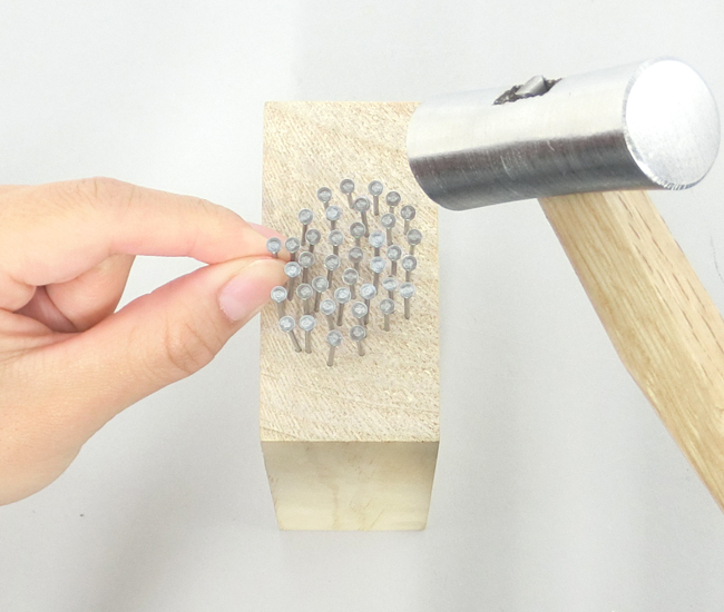 ①密集した釘を打つ位置を決めます。まずは真ん中に釘を打ちましょう。