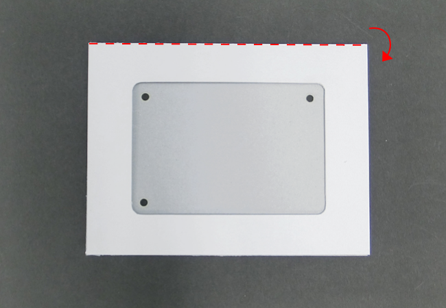 ⑥ずれないように角を合わせて折り返し、貼りつけます。同じように10秒ほど押さえます。