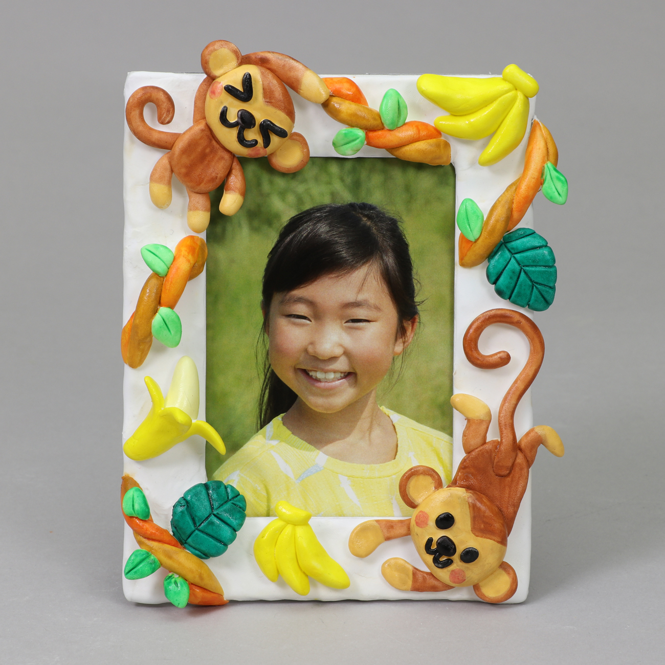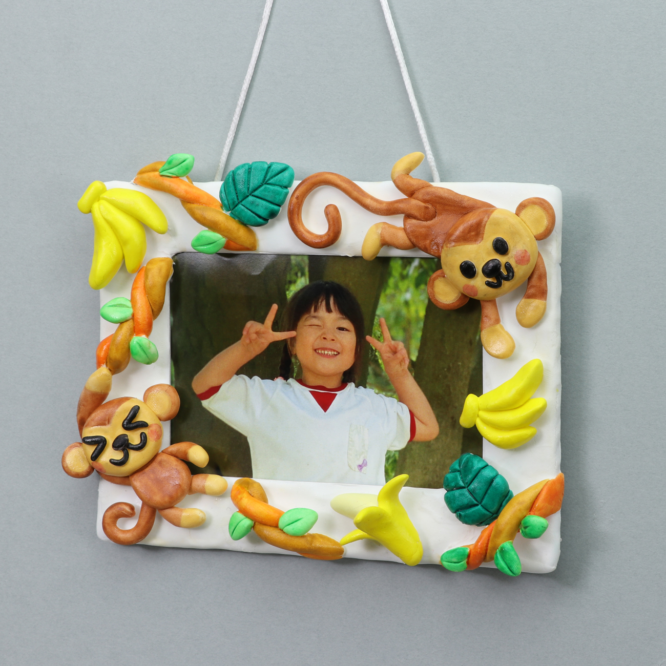ねんどのひもをつくることで、サルが木にぶら下がる様子を表現しました。