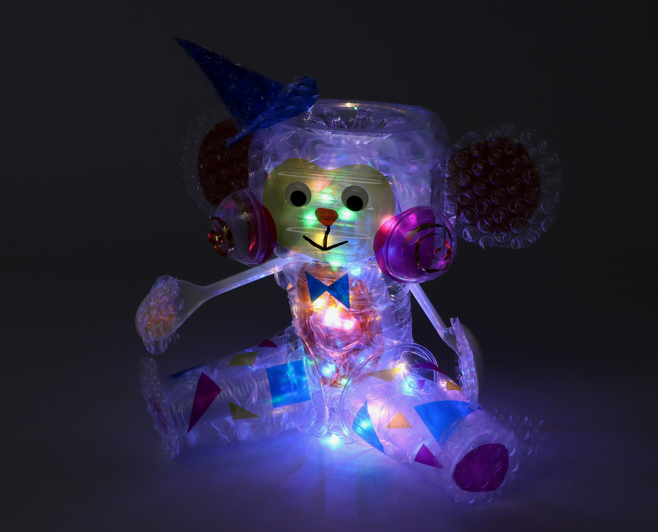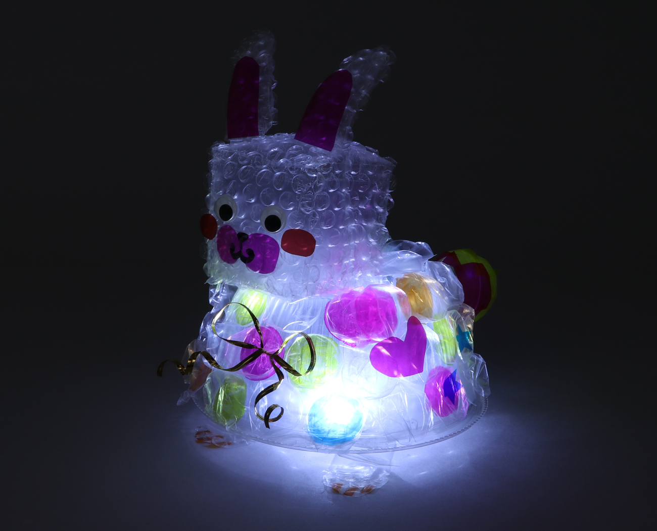 ライトで照らすと、中にいれたプチプチマットが反射してきらきら光って見えます。