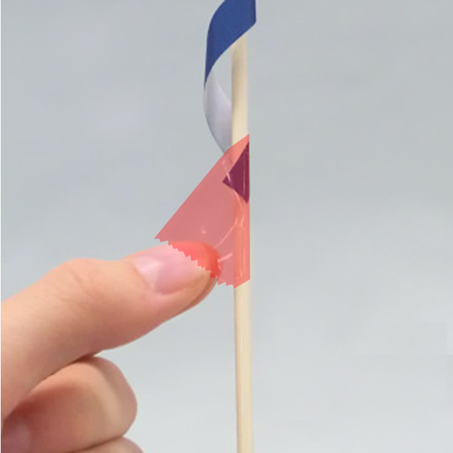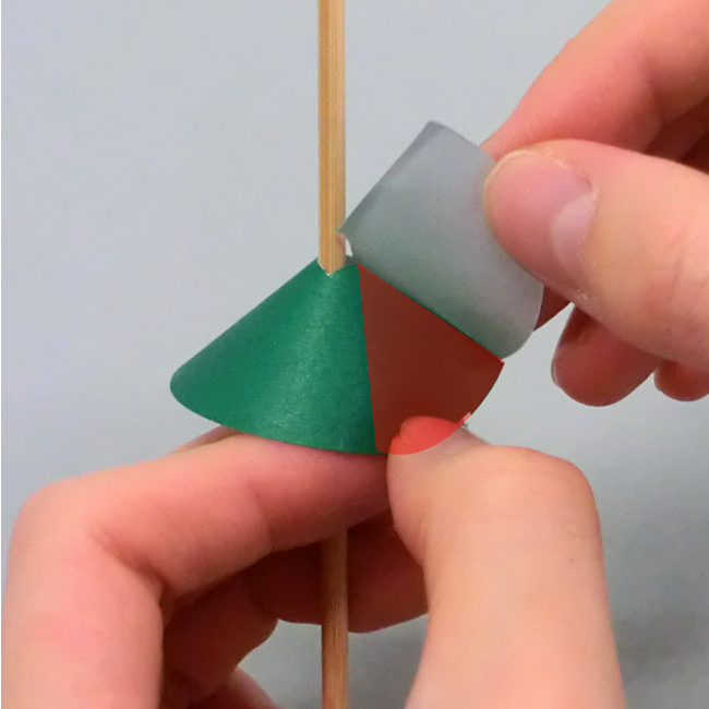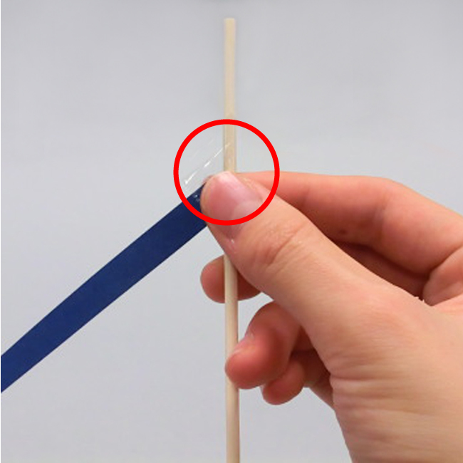 ④竹ひごを包むように色がみを重ねて、のりやセロハンテープで貼りつけます。
