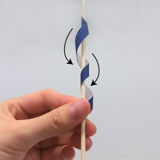 色がみを竹ひごに巻きつけると、動きに変化のある飾りをつくることができます。
