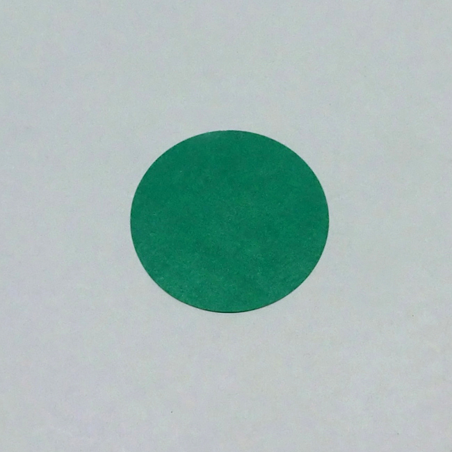 ①色がみに円を描き、はさみで切り取ります。