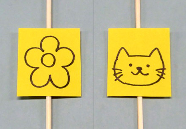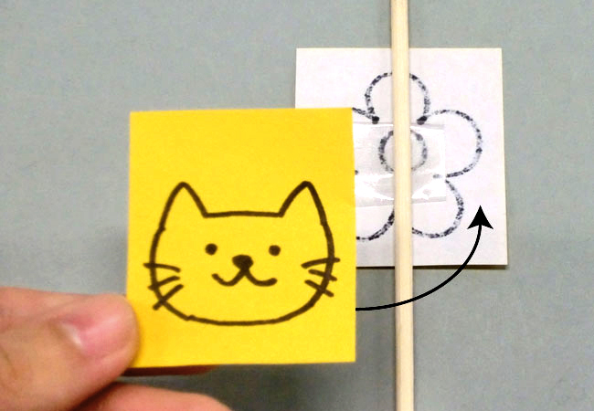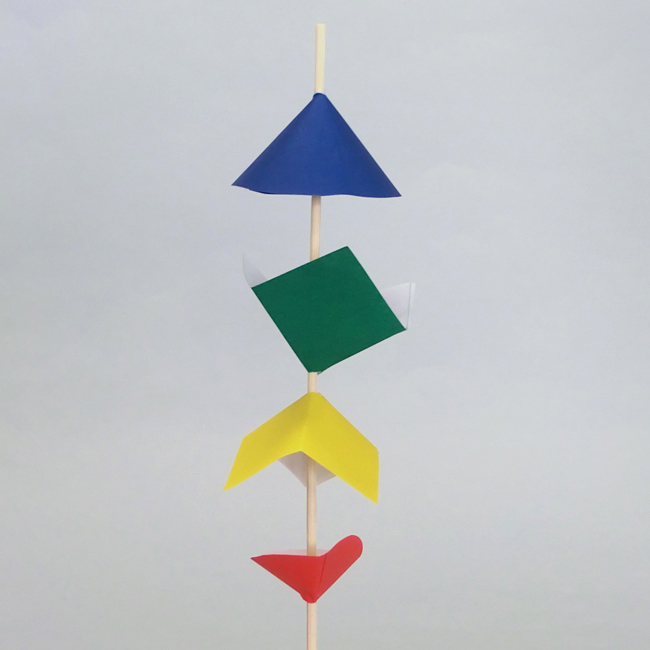 色がみの形や貼り合わせ方を変えると、回したときにいろいろな見え方をします。