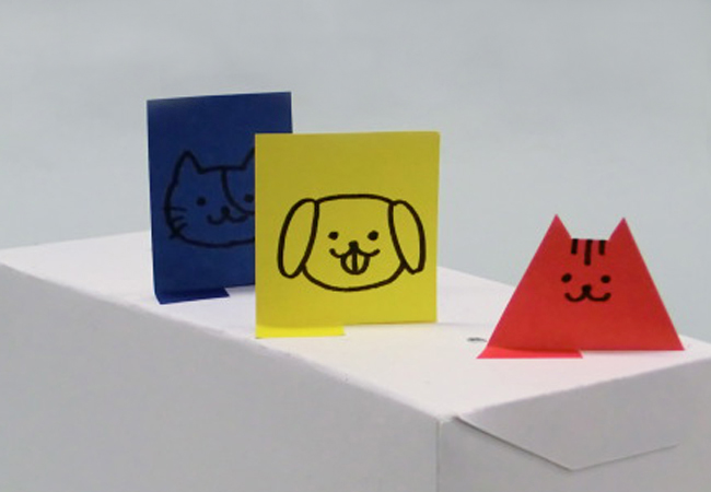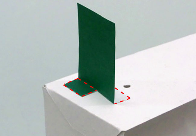 色がみののりしろに切り込みを入れて前後に折ると、立たせることができます。