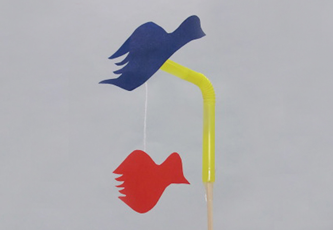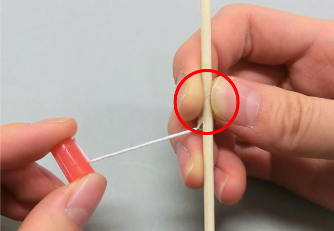 たこ糸を使った飾りのつくり方 1.つなぐ 2.巻きつける 1.つなぐ 2つの飾りをたこ糸でつなぐと、一緒に回すことができます。 2つの飾りをたこ糸でつなぎ、セロハンテープで貼りつけます。 2.巻きつける たこ糸とストローを使うと、竹ひごに巻きつく飾りをつくることができます。 ①小さく切ったストローにたこ糸をセロハンテープで貼りつけます。 ②竹ひごにたこ糸をセロハンテープで貼りつけます。 お使いのブラウザは動画の再生に対応していません。以下のリンクより動画をダウンロードして,再生して下さい。 動画をダウンロード ③巻きつく飾りがどのように動くかを見てみましょう。