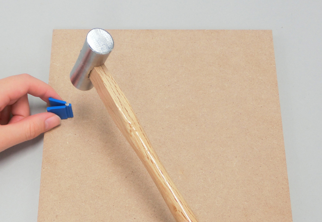 板をつなげてつくるときは、ジョイントパーツ用ガイドを使うと釘を打つ位置がわかりやすくなります。