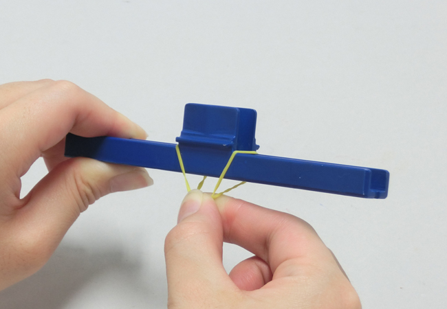 ②ジョイントパーツの突起に輪ゴムをかけます。