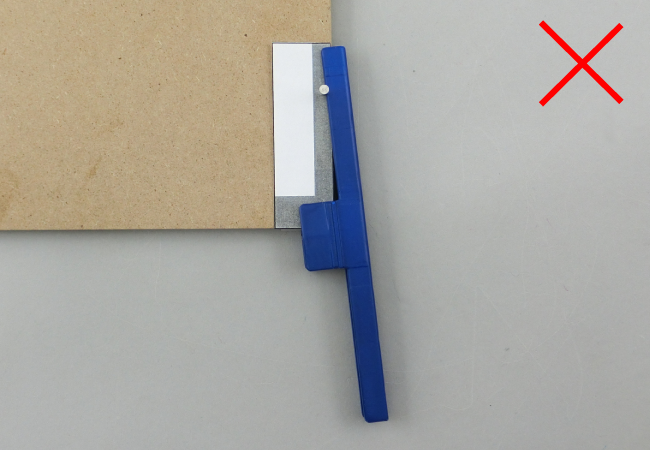 ①フリッパー用ガイドを切り取り、板の角にあわせてセロハンテープで貼ります。
