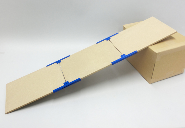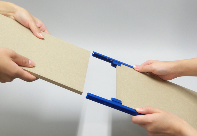 ※ジョイントパーツを板につなげてもすぐ抜けてしまう場合は板にセロハンテープを数枚貼りつけて調整します。
