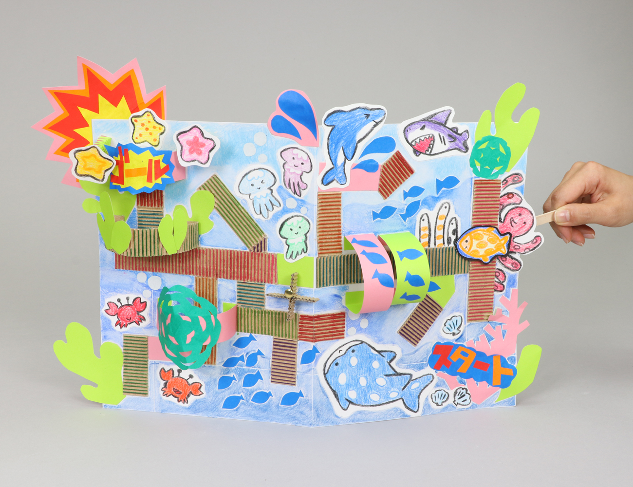 白ボール紙の使い方を変えることで、遊び方を変えたり、雰囲気の違う作品が作れます。