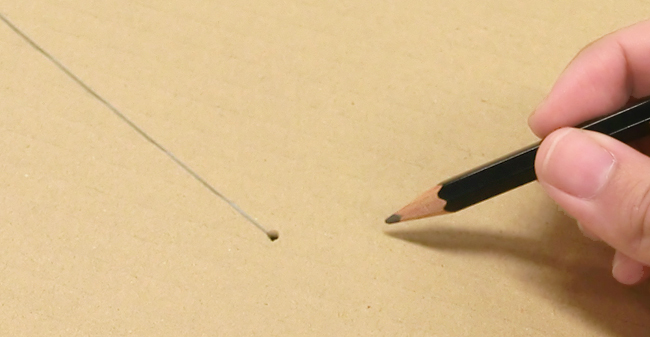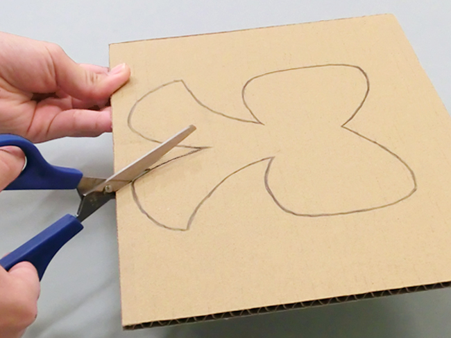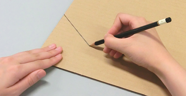 まずはつくる作品を決めましょう。ダンボールやボール紙に、鉛筆で下絵を描きます。