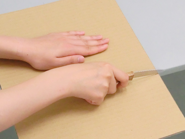 力を入れすぎるとダンボールに穴があいてしまうので、気をつけましょう。