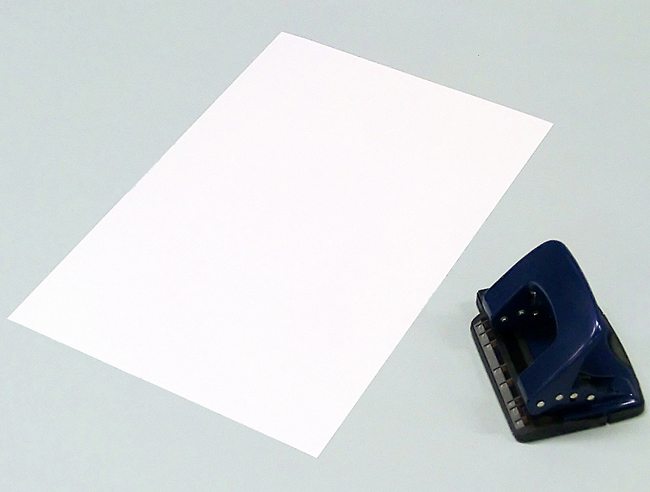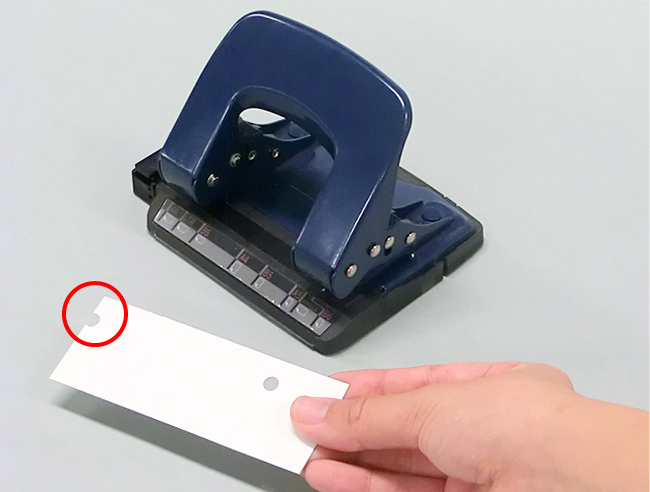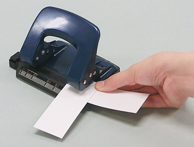 ボール紙に穴をあけるときは、不必要な穴があいてしまわないように、穴あけパンチの片側だけを使いましょう。