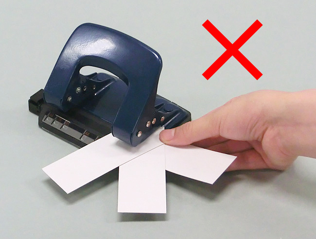 ボール紙を重ねすぎると穴あけパンチに負荷がかかり、上手く穴があかないことがあります。3枚以上重ねないようにしましょう。