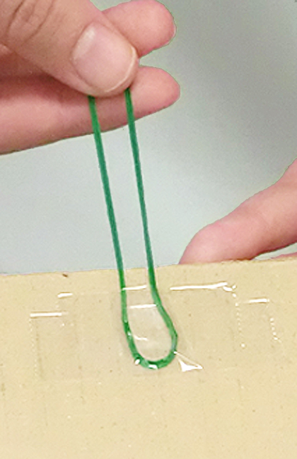 セロハンテープとダンボールの間に空気が入ると、輪ゴムが取れやすくなるので気をつけましょう。