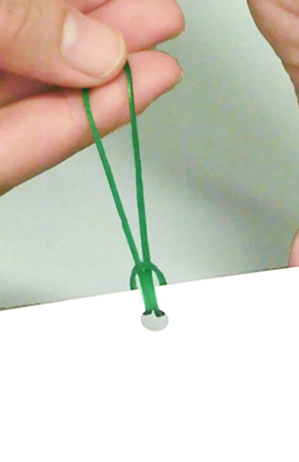 バランスが取れる位置を探して、輪ゴムをつけましょう。