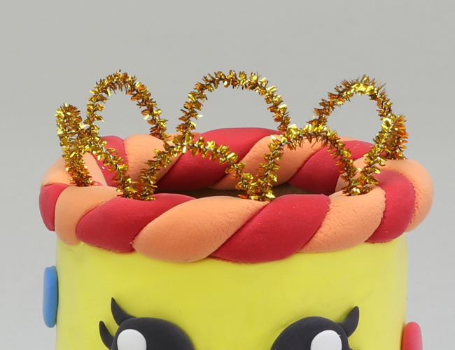 モールで形をつくり、型押しをすると、ふちに細かい線のついた模様ができます。