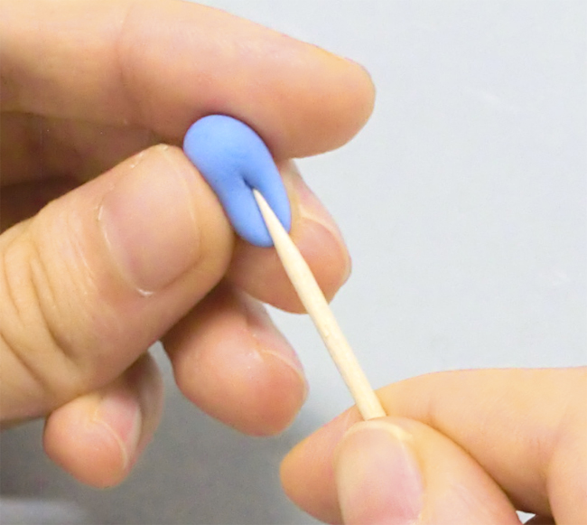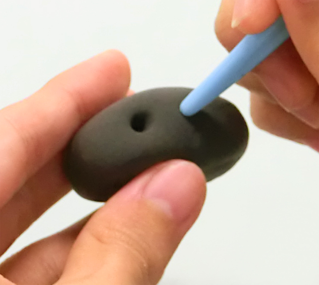 つまようじの先端を軽く押しつけることで、軽量ねんどに模様をつけることができます。