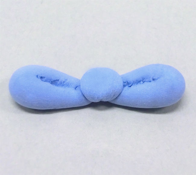 指先で軽量ねんどをつまみ、軽くねじることで形を整えます。
