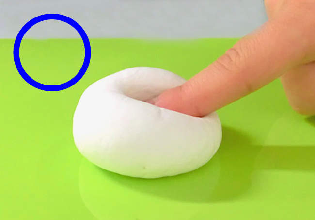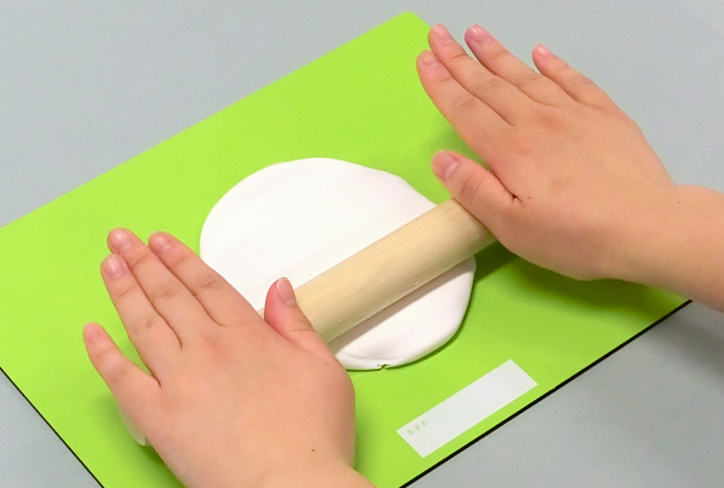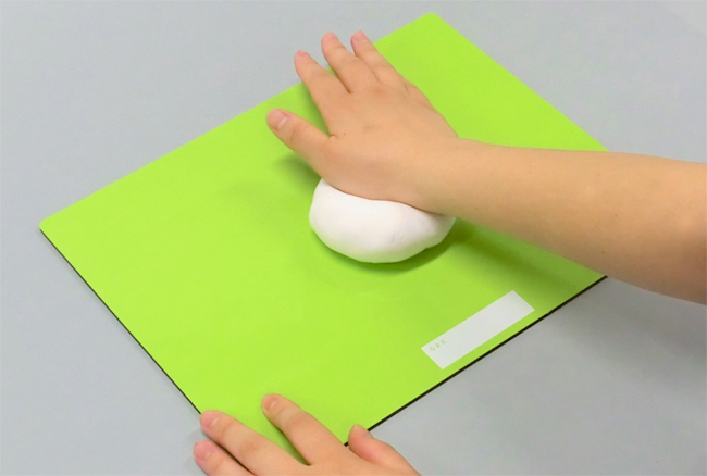 手のひらを使って軽量ねんどを押し広げると、平らにのびた形をつくることができます。