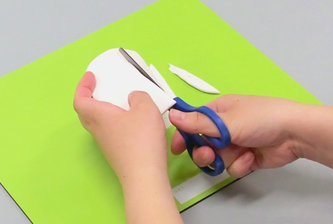 薄くのばした軽量ねんどは、はさみで切ることができます。