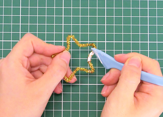 モールを使って飾りをつくるときには、モールの端でけがをしないように注意しましょう。