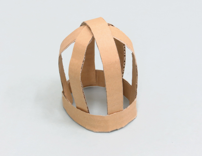 細く切って曲げたダンボールを使って、ドームをつくることができます。