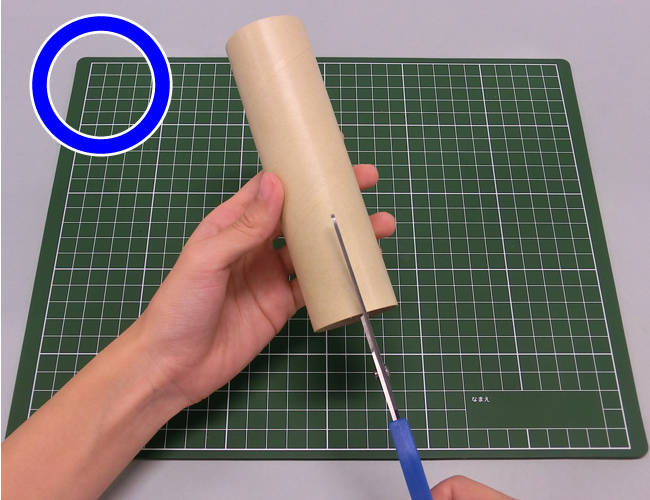 紙管は表面が丸くすべりやすいため、カッターナイフで切ると刃がすべって危険です。必ずはさみで切りましょう。