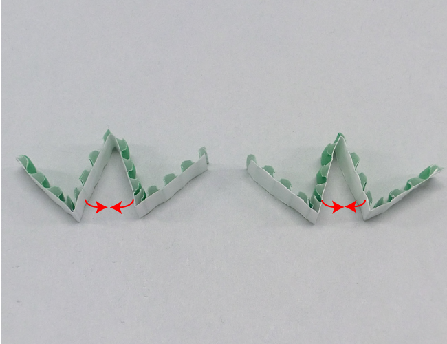②2本のカラーダンボールをそれぞれ半分に山折りします。