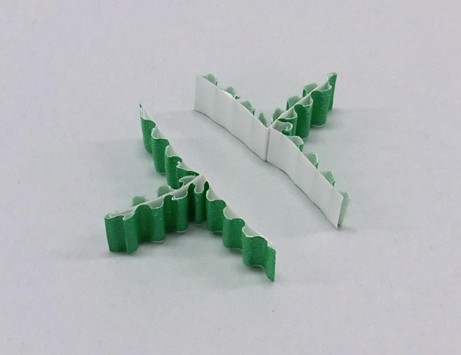 ④2本のカラーダンボールを木工用接着剤で貼り合わせ、羽をつくります。